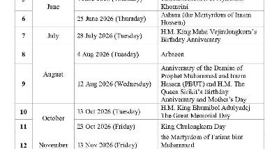Holidays of the Embassy of the Islamic Republic of Iran in Bangkok for Iranian Year 1405
